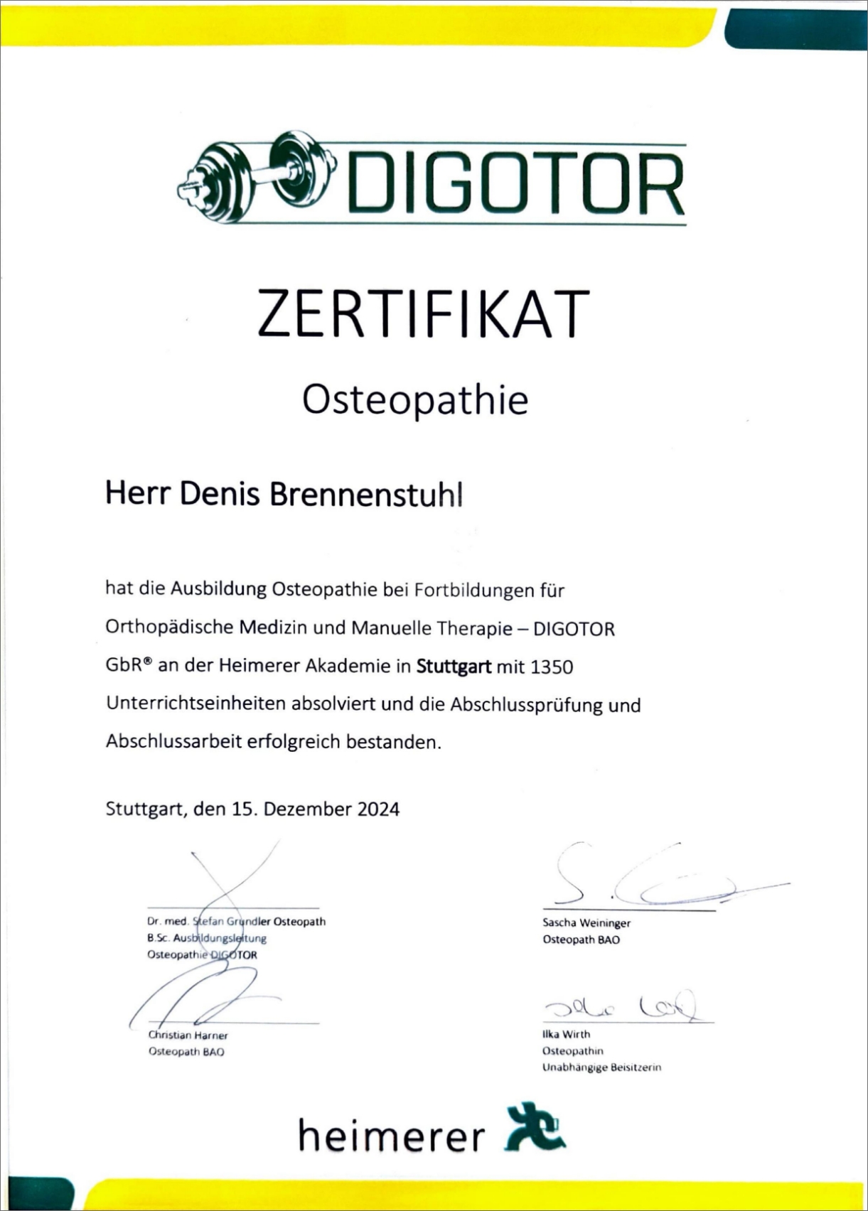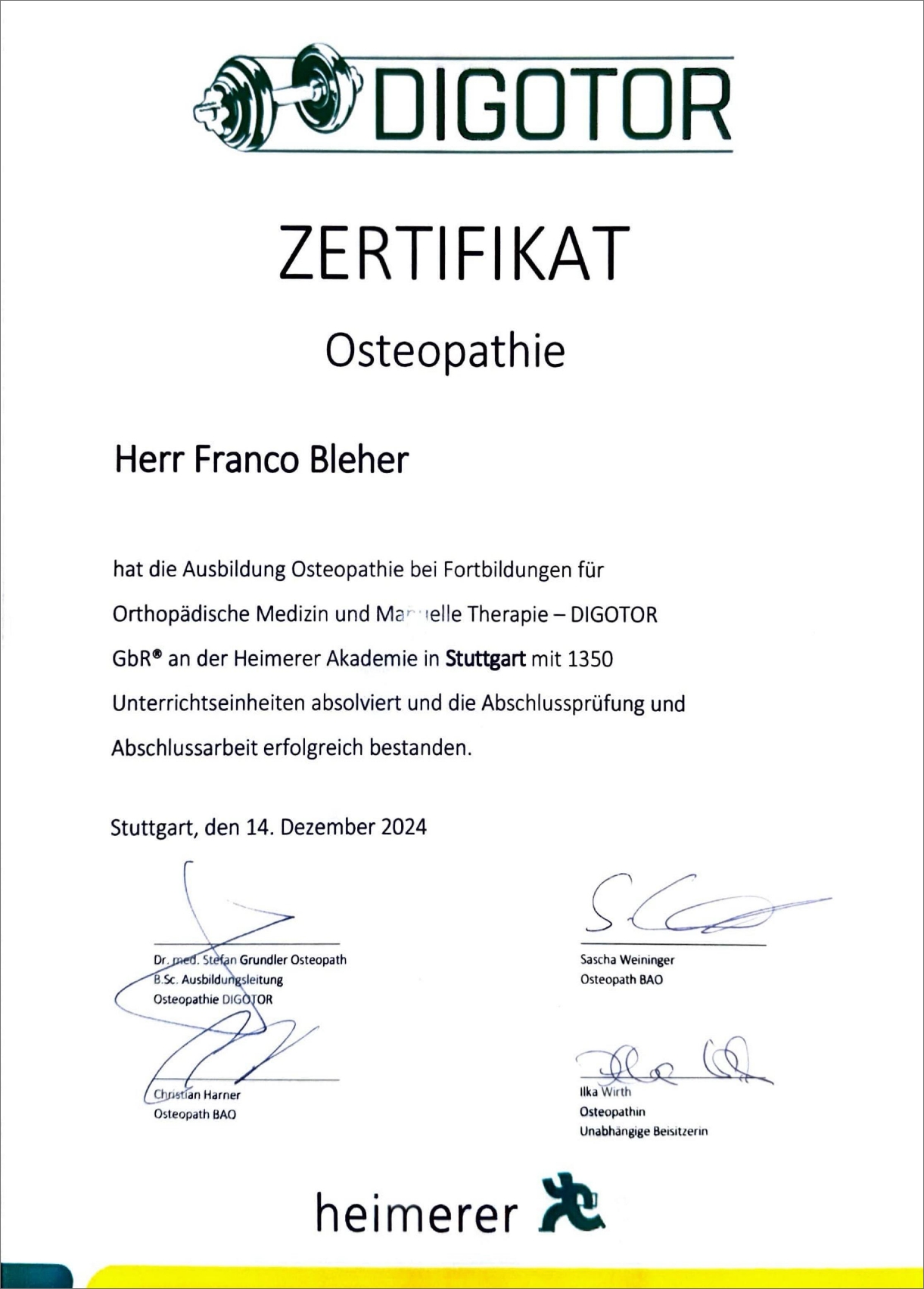 Osteopath D.O. Int. D.O. VFO (1400 Stunden)