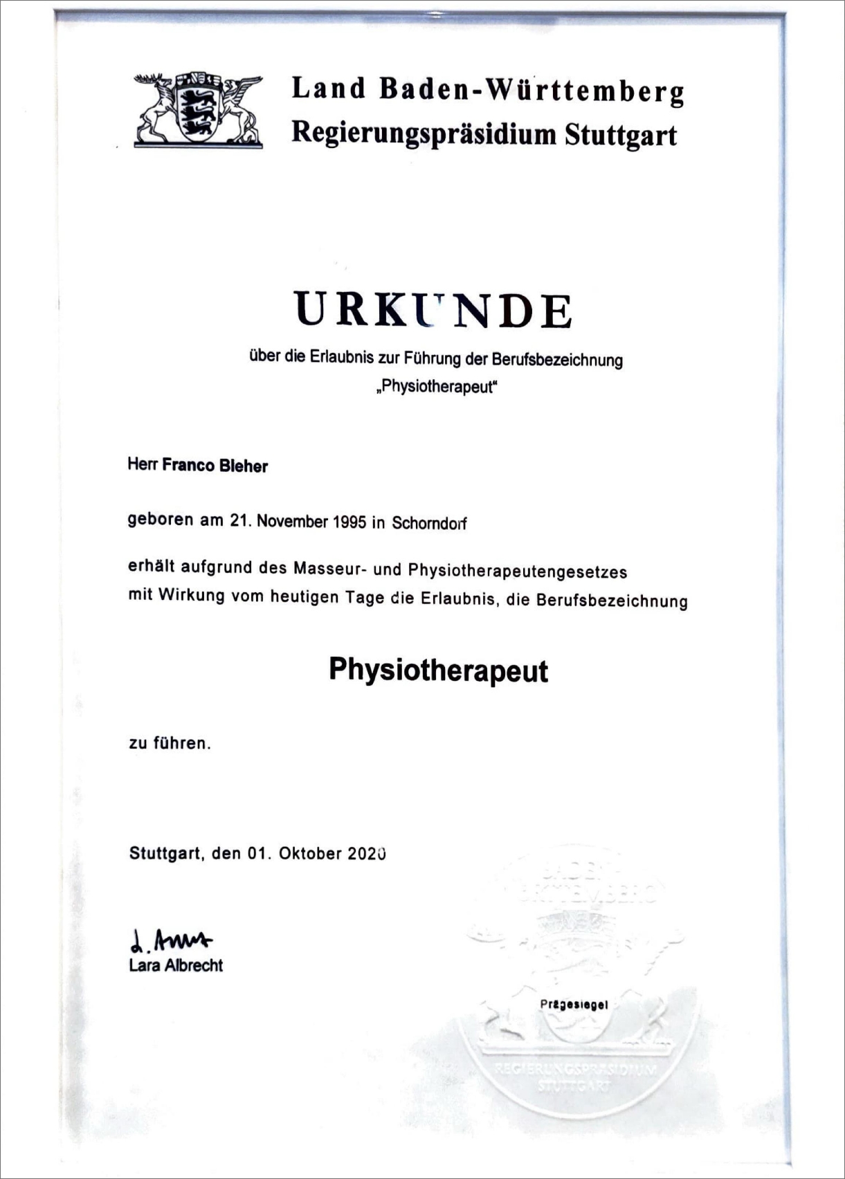 • Physiotherapeut VfB Stuttgart 2007-2016